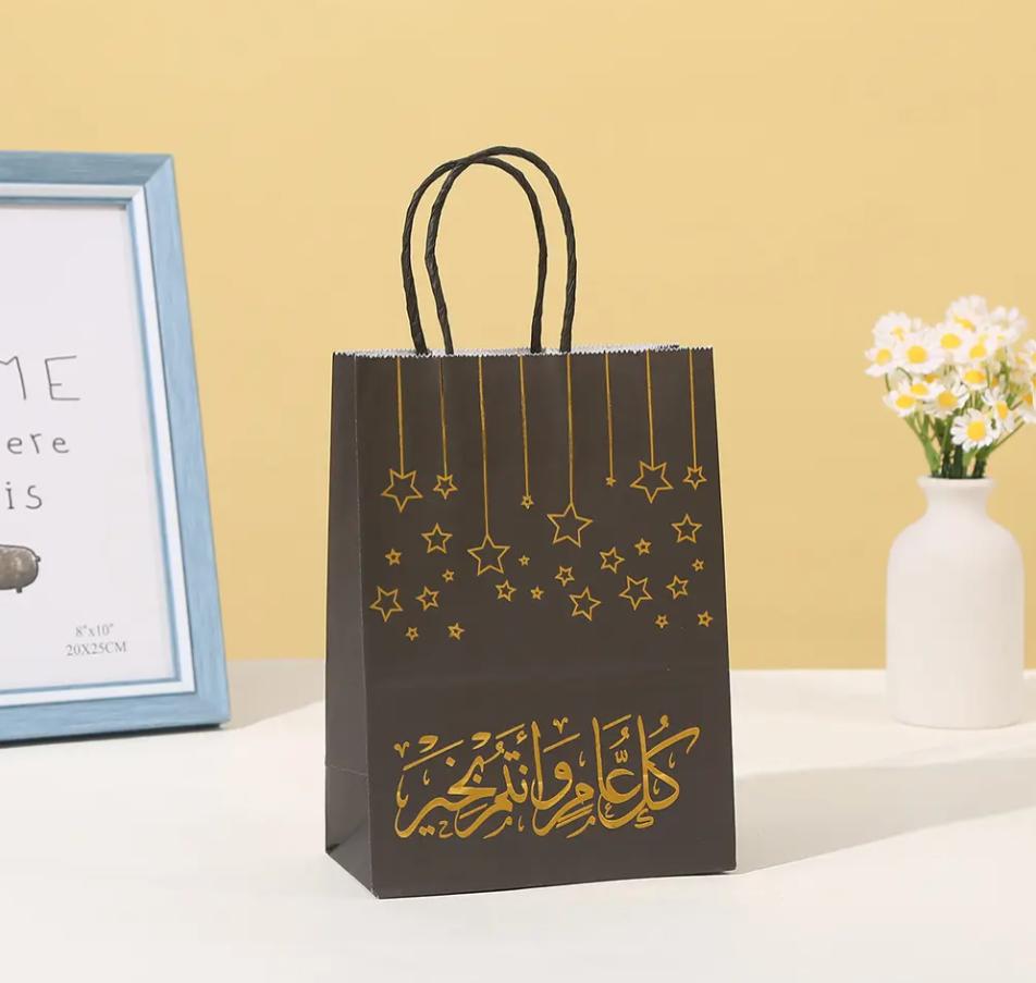 āØĀ Product Overview:Ā This set includes 5pcs Eid Party Gift Bags with Arabic printing. Perfect for Muslim Islamic festivals, these paper bags are ideal for decorating and gifting. Each bag measures 21*15*8cm. They can hold holiday candies, apples, and small items. Enhance your home decor and make it more beautiful. A great gift for family and friends.