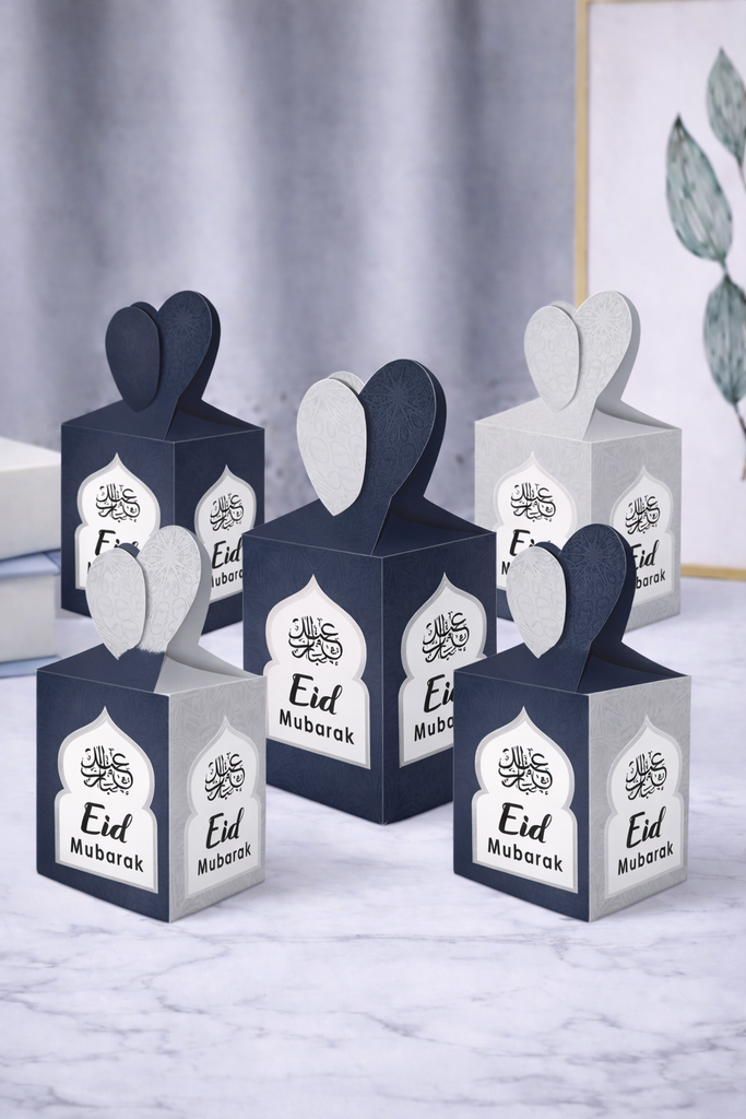 Eid Mubarak Favour Boxes – Navy/Silver Party Treat Boxes (Pack 5)