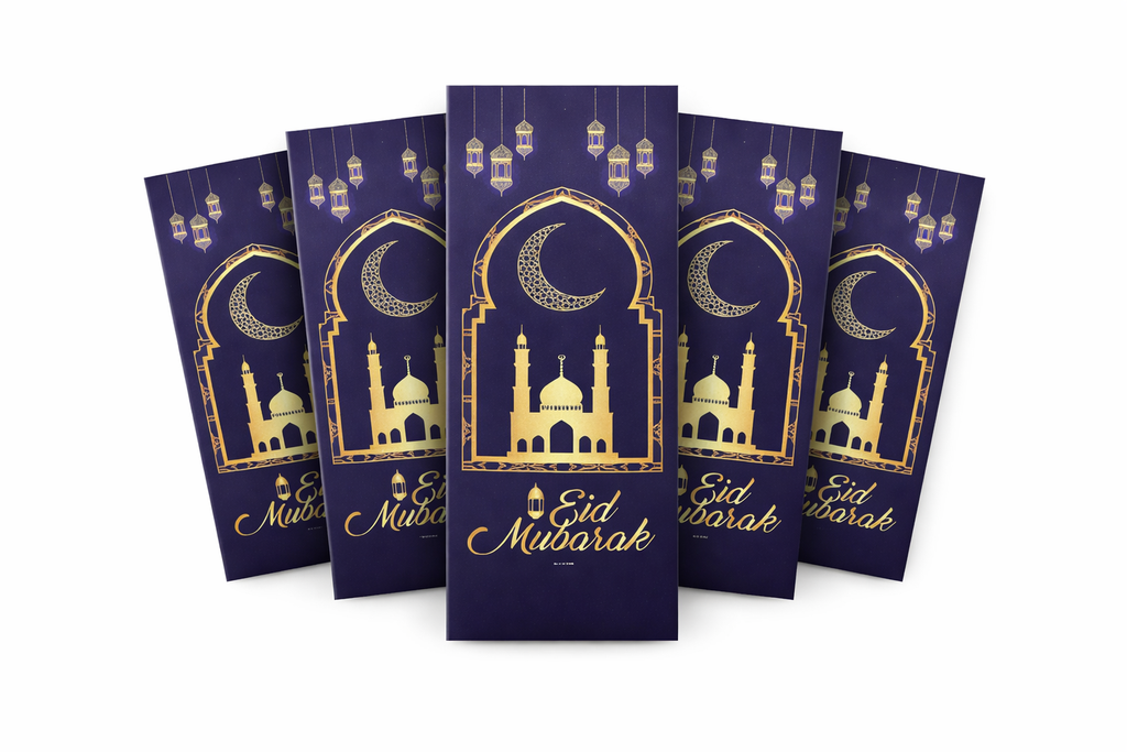 Celebrate Eid in style with this pack of 10 Eid Mubarak money envelopes, perfect for gifting Eidi cash to friends and family. Each envelope features a beautiful Islamic-inspired design with “Eid Mubarak” on the front, making your Eid gifts feel extra special. Made with quality materials and a neat wallet-style format, they’re ideal for Eid parties, family gatherings, and gifting to children and loved ones.