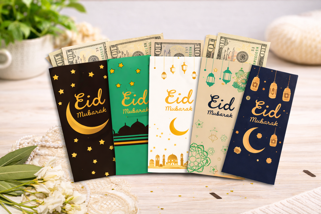 Eid Mubarak Money Envelopes Set - 5 Designs - Islamic Moon, Stars & Lanterns